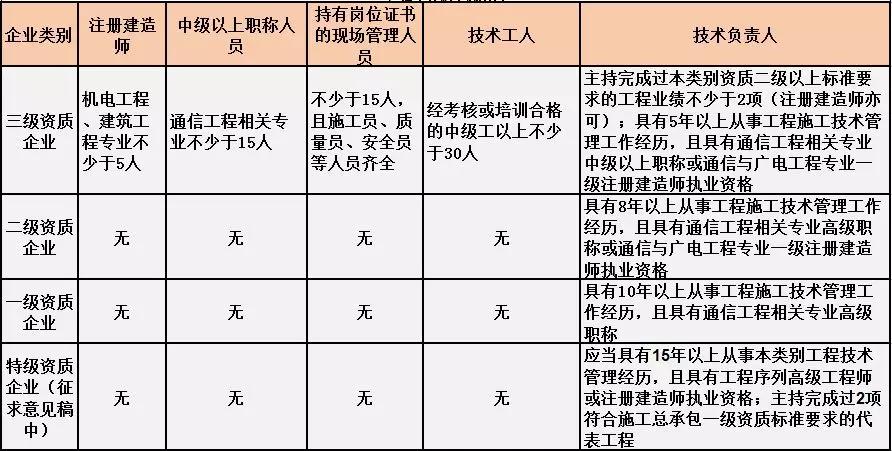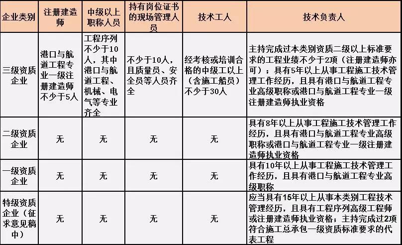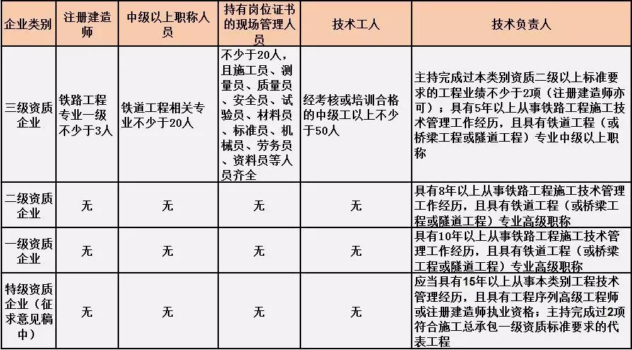 換句話說(shuō),并不是所有企業(yè)資質(zhì)都不要求有建造師等企業(yè)人員。施工總承包三級(jí)資質(zhì)企業(yè)對(duì)建造師等人員仍有要求,一級(jí)資質(zhì)、二級(jí)資質(zhì)企業(yè)保留技術(shù)負(fù)責(zé)人這一項(xiàng)要求,特級(jí)資質(zhì)另有規(guī)定。